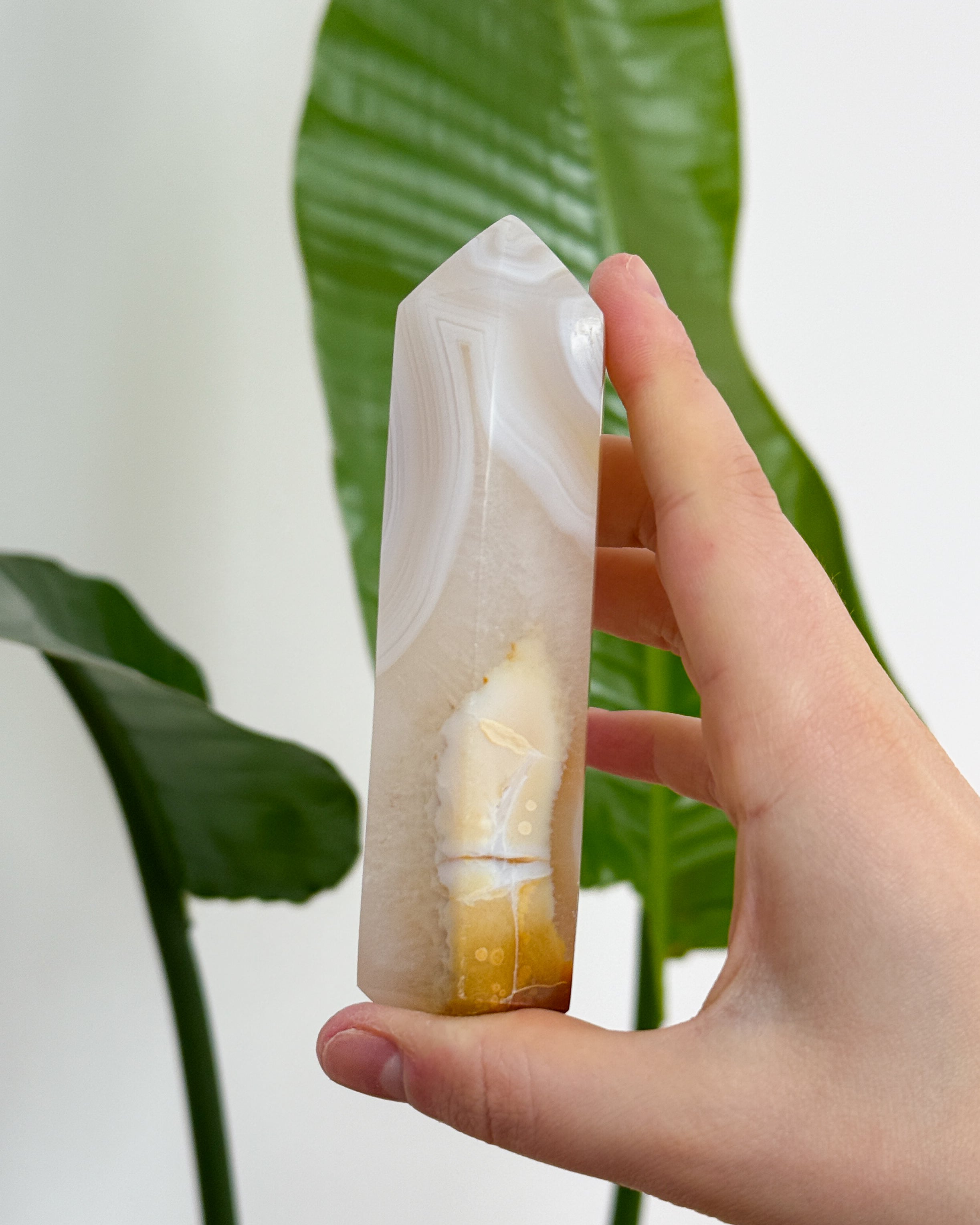 Der Botswana-Achat wird in der Steinheilkunde als sanfter, aber kraftvoller Schutz- und Heilstein angesehen, der tief mit den Energien der Erde verbunden ist. Seine feinen, wellenartigen Bänderungen spiegeln die Zyklen des Lebens wider und erinnern daran, dass alles in Bewegung bleibt und Wandel stets Teil unseres Weges ist. Spirituell wird er als Stein der Geborgenheit verehrt, der das Wurzelchakra stärkt und dadurch ein Gefühl von innerer Sicherheit und Verwurzelung schenkt.
