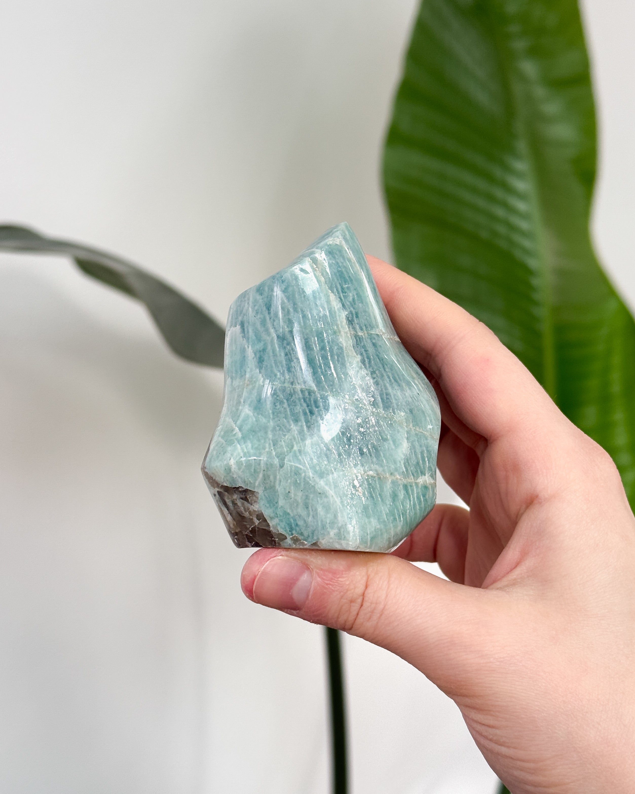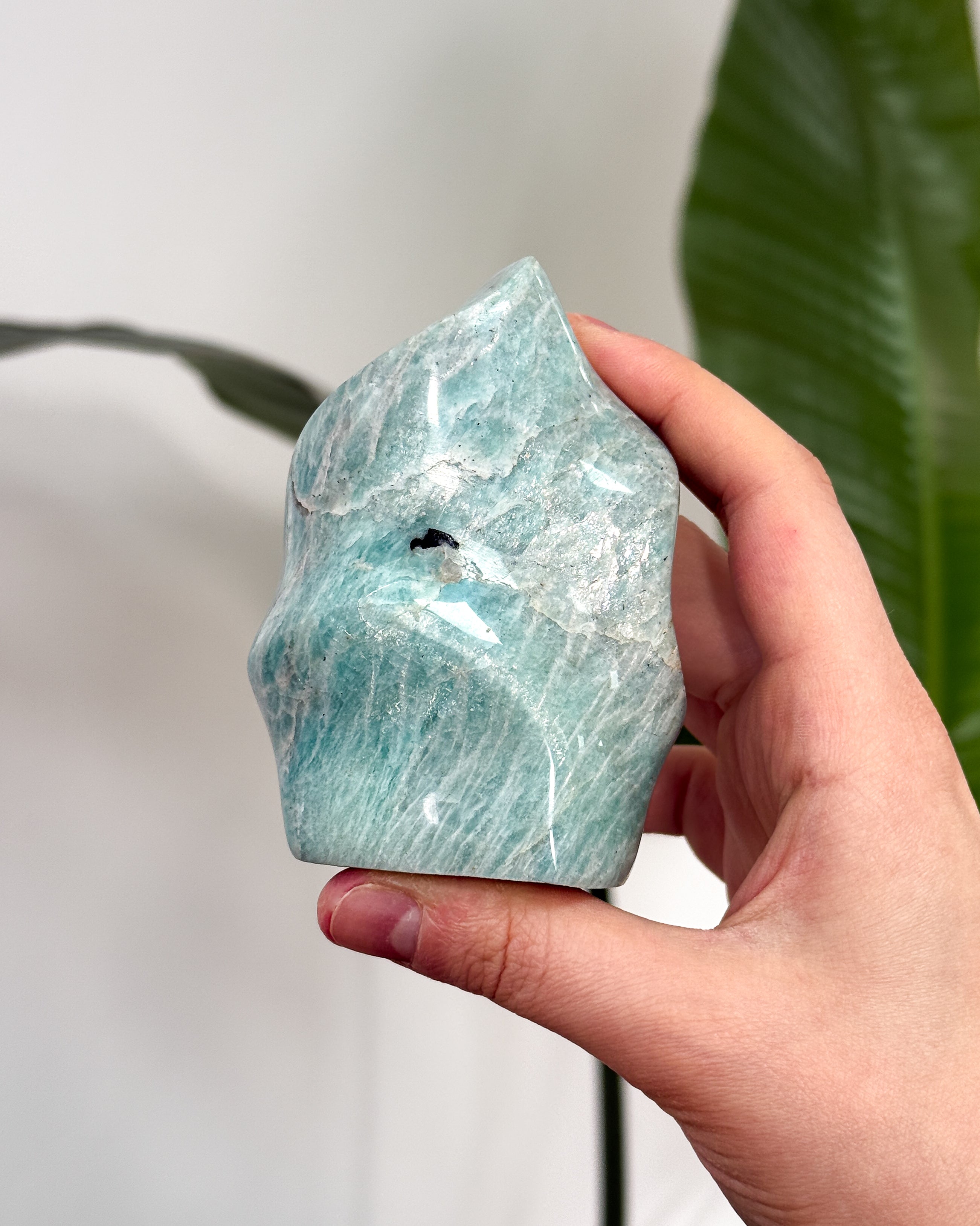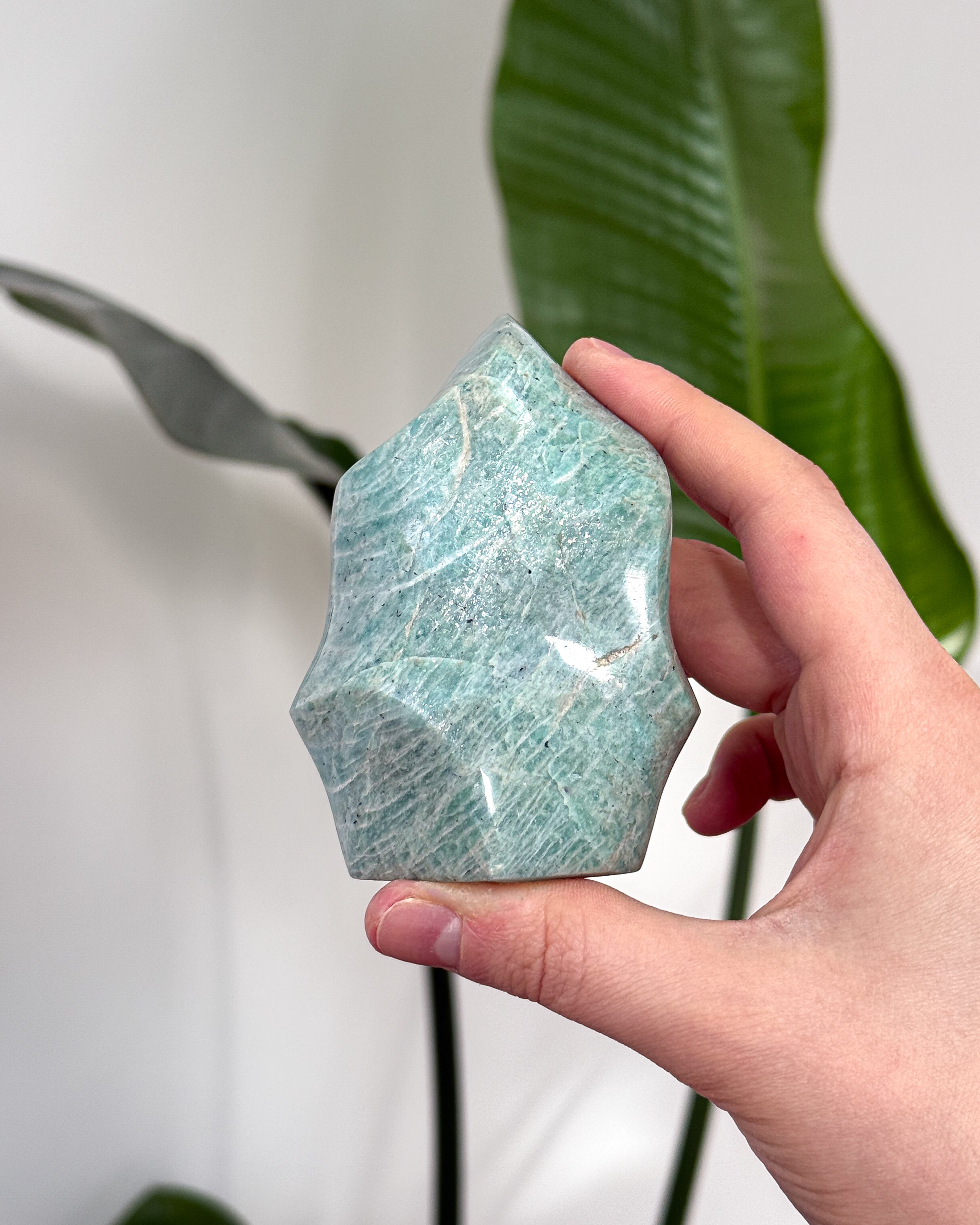 Der Amazonit bringt Harmonie, öffnet das Herzchakra und hilft, Blockaden zu lösen. Er schenkt innere Ruhe, Klarheit und Vertrauen.