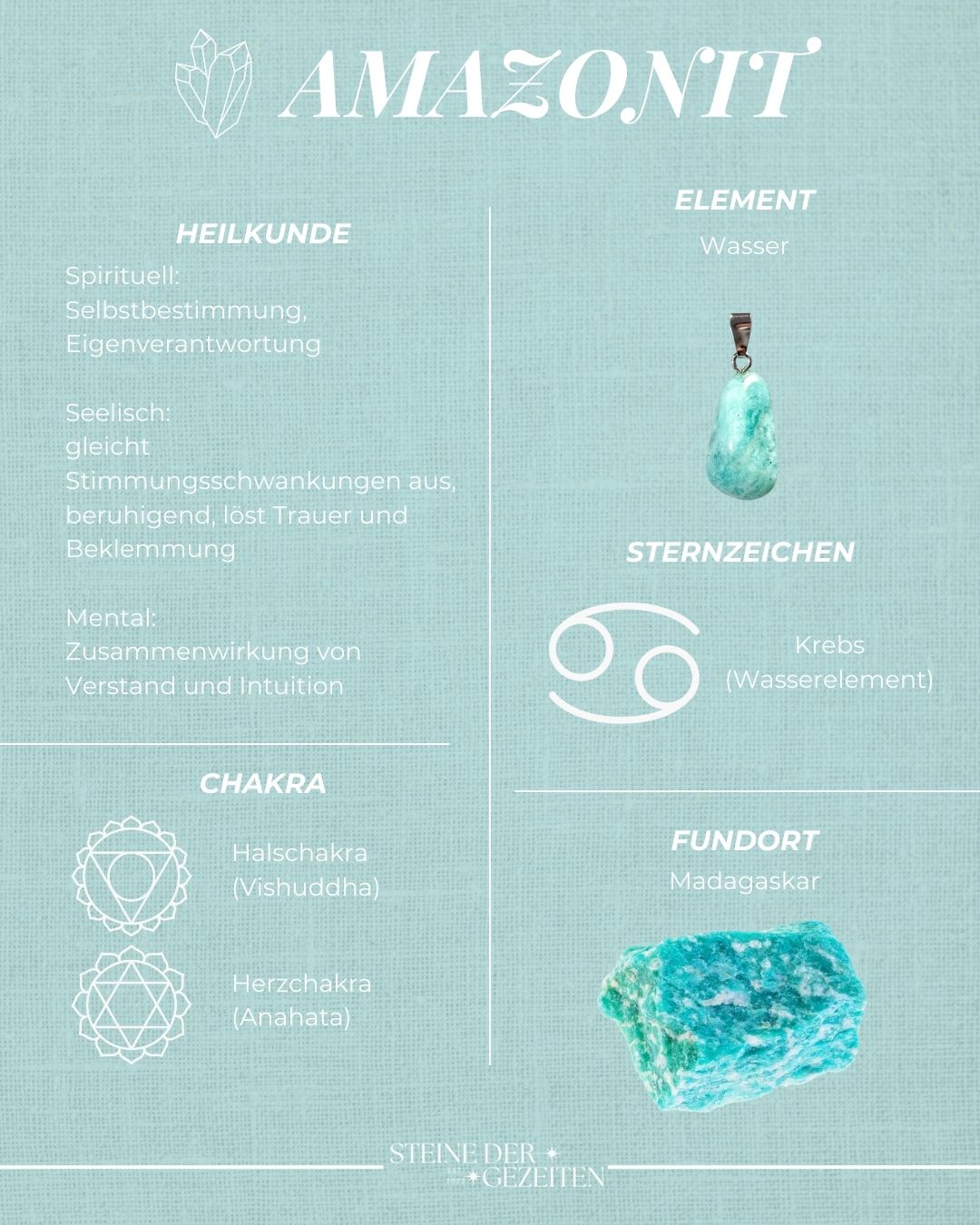Neben seiner Wirkung auf das Halschakra bietet der Amazonit eine Vielzahl weiterer heilender Eigenschaften, die das emotionale, körperliche und geistige Wohlbefinden unterstützen. Besonders geschätzt wird der Amazonit für seine beruhigenden und ausgleichenden Eigenschaften: