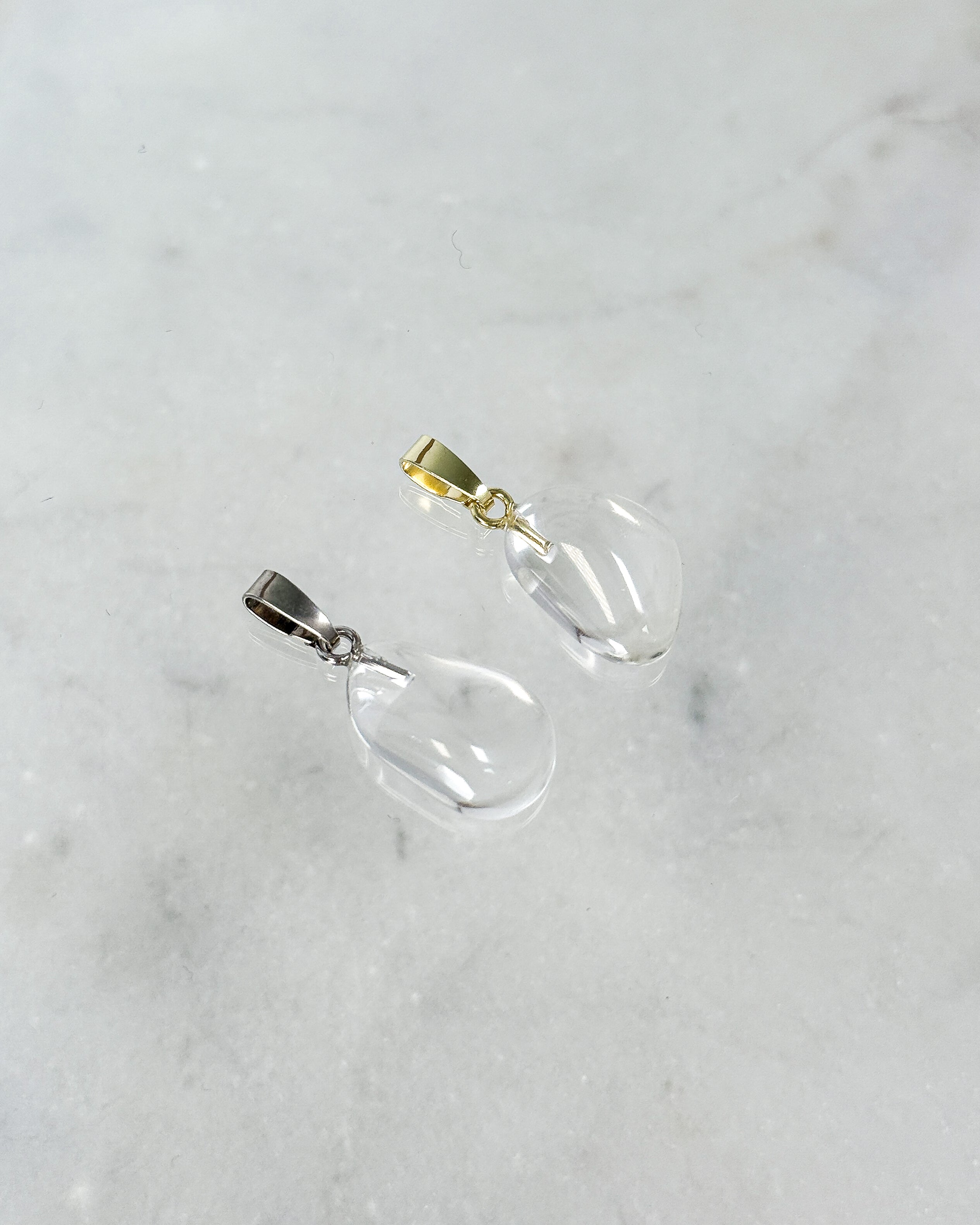 Jeder Anhänger besteht aus einem Bergkristall aus Brasilien. Mit einer Länge von ca. 25–35 mm (inklusive Öse) trägt er sich angenehm nah am Körper. Wähle zwischen einer Öse aus 925er Sterlingsilber oder einer warm strahlenden 14 Karat Vergoldung – passend zu deinem persönlichen Stil.