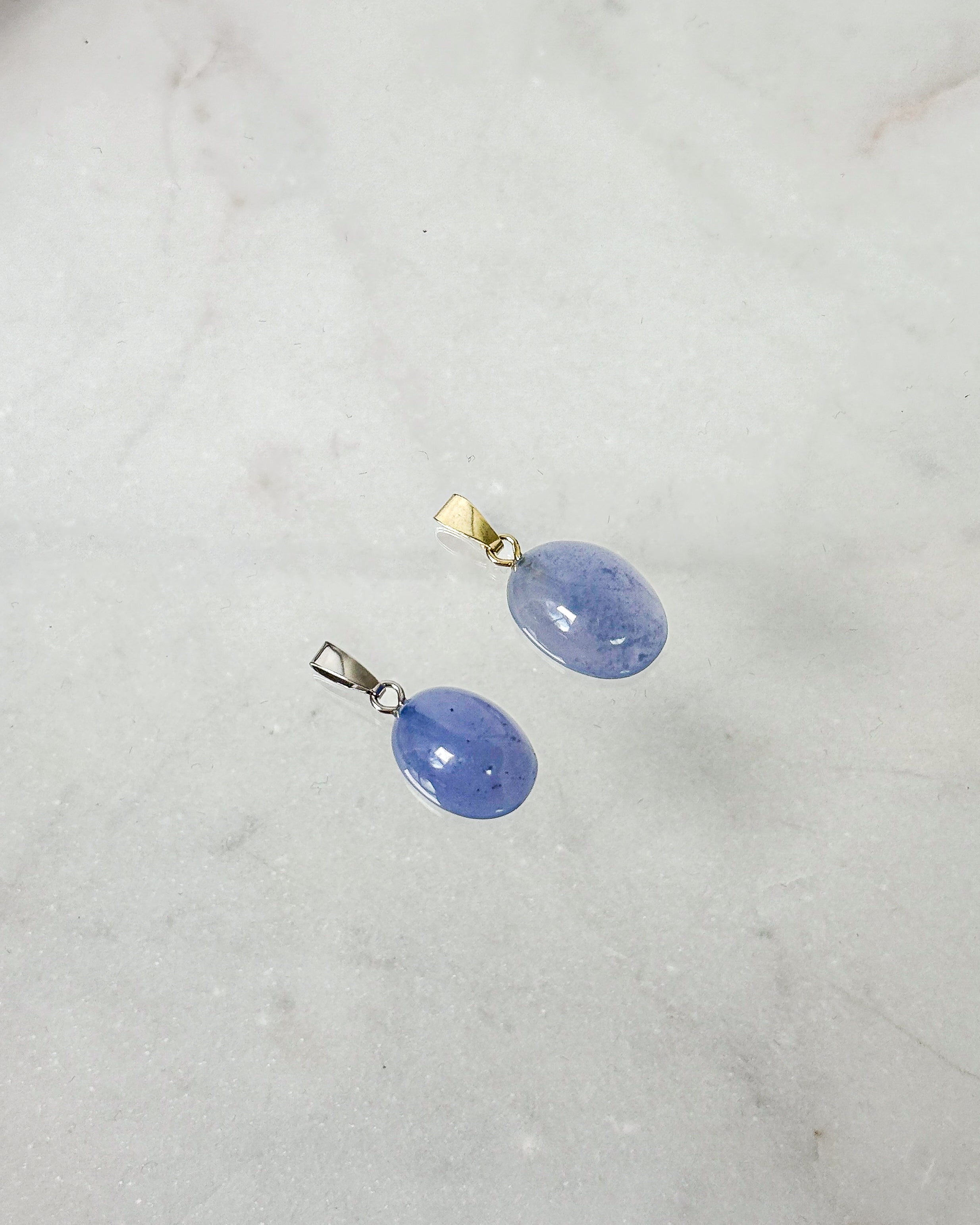 Jeder Anhänger zeigt die typischen hellblauen Farbtöne mit den zarten Bänderungen, die diesen Edelstein so einzigartig machen. Als Schmuck getragen, begleitet er dich nicht nur ästhetisch, sondern auch energetisch – im Alltag wie in besonderen Momenten.