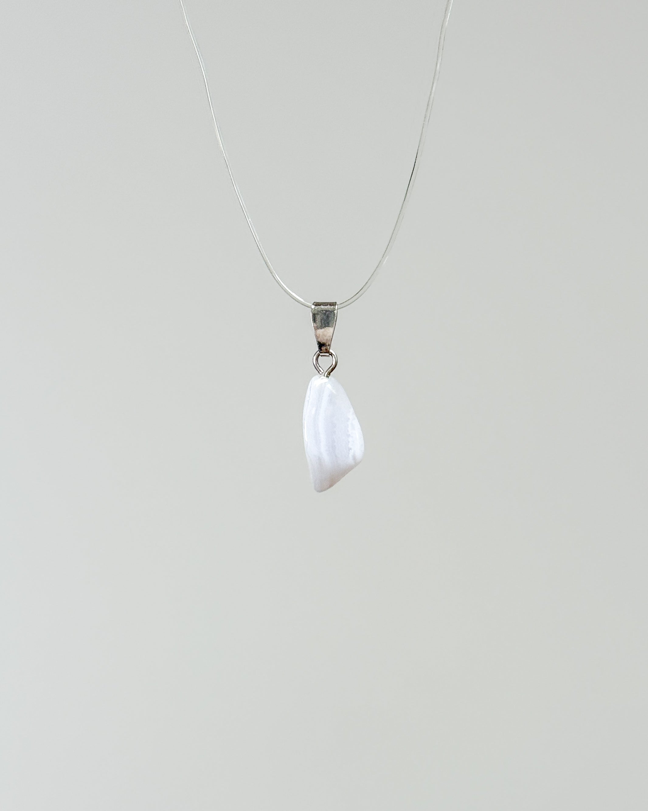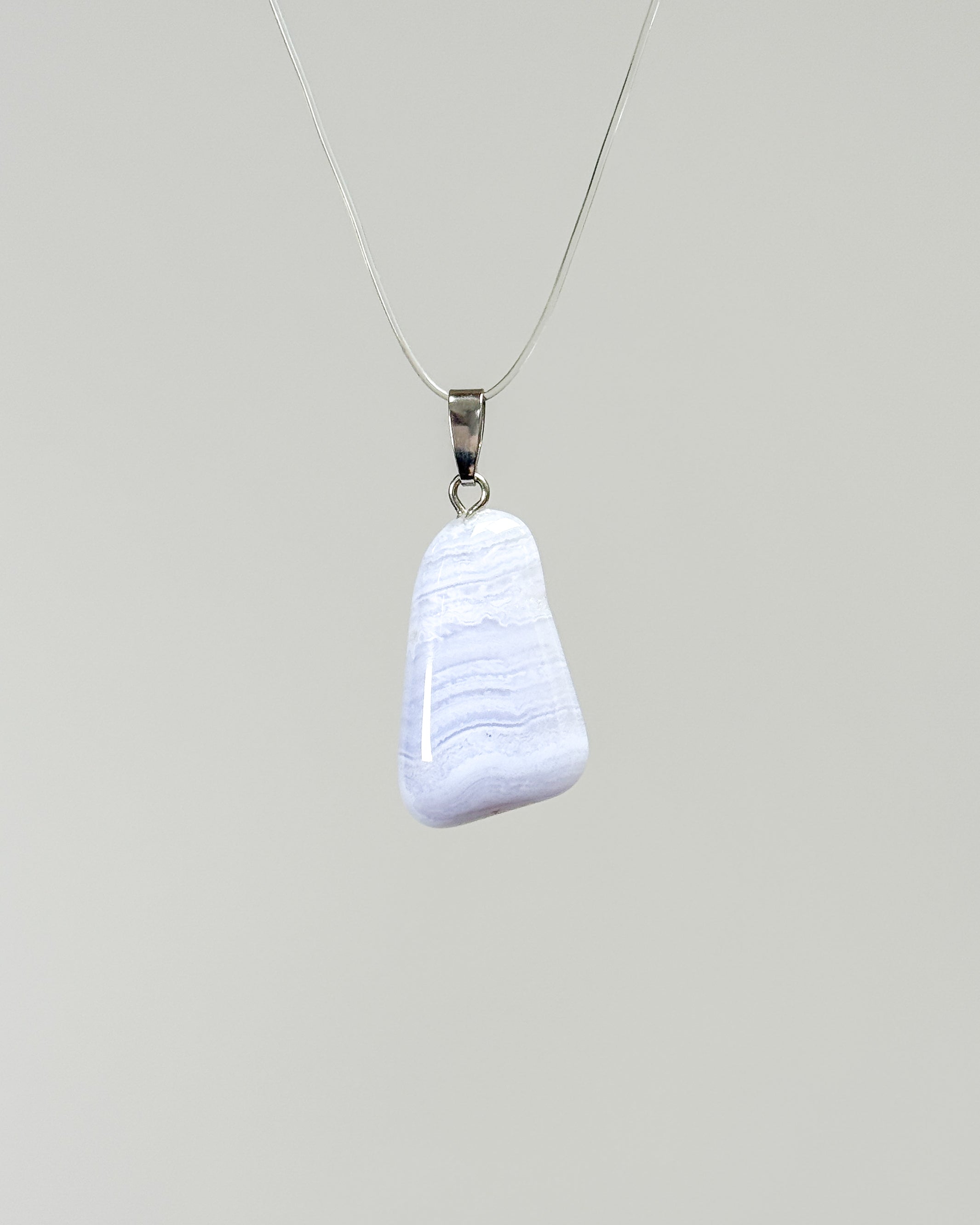 Blue Lace Agate fördert ruhige Kommunikation, Gelassenheit und Harmonie. Er öffnet das Halschakra und schenkt innere Ruhe.