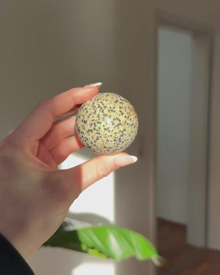 Dalmatiner-Jaspis schenkt Lebensfreude, Erdung und Schutz. Er stärkt das Wurzelchakra und bringt Leichtigkeit in den Alltag.