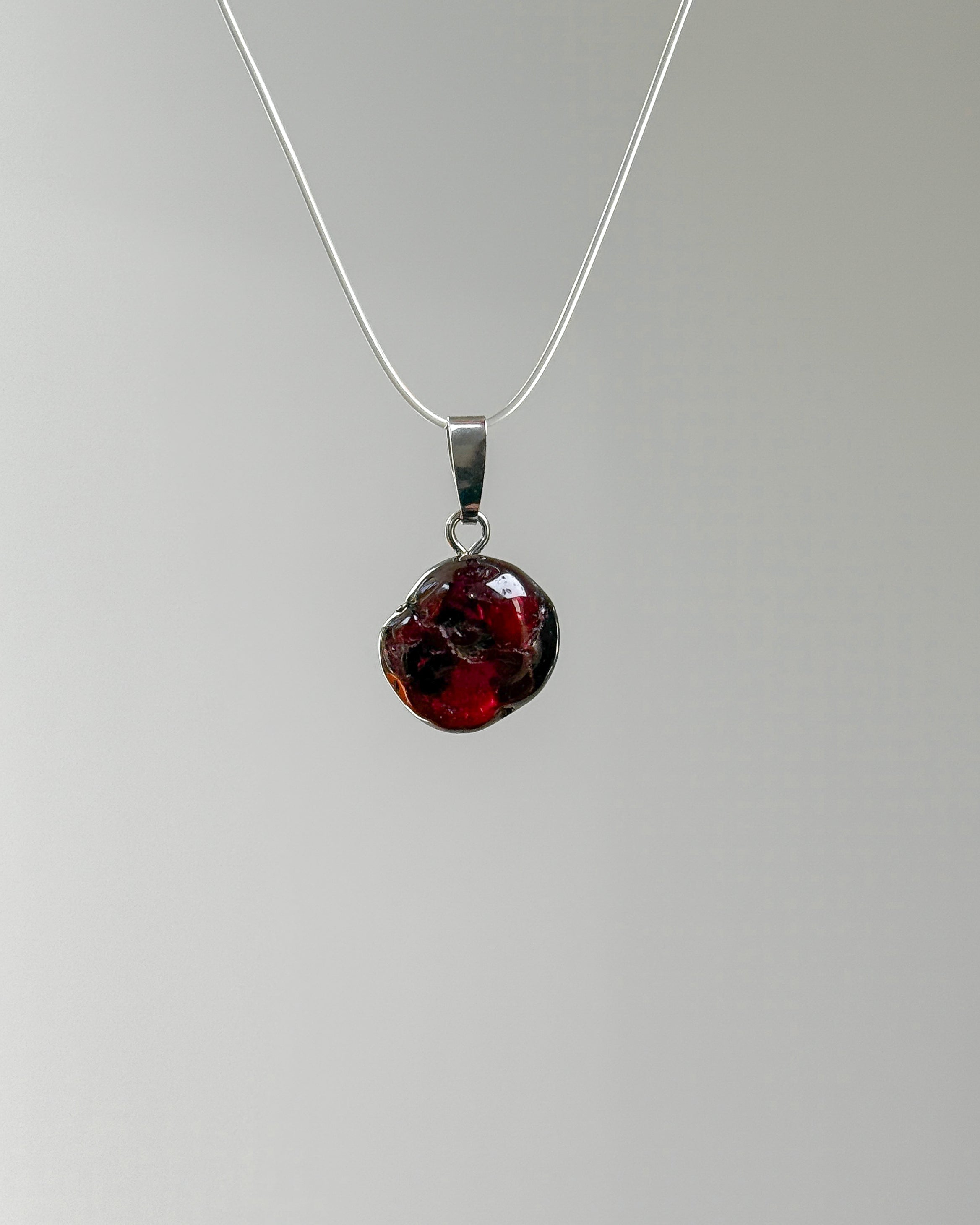Granat schenkt Leidenschaft, Mut und Lebenskraft. Er aktiviert Wurzel- und Herzchakra, stärkt Vertrauen und Entschlossenheit.