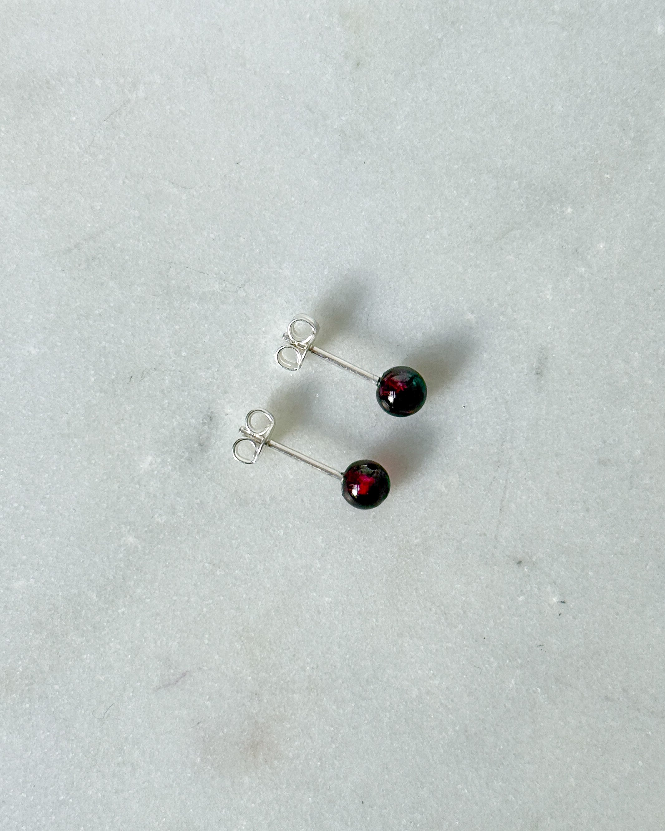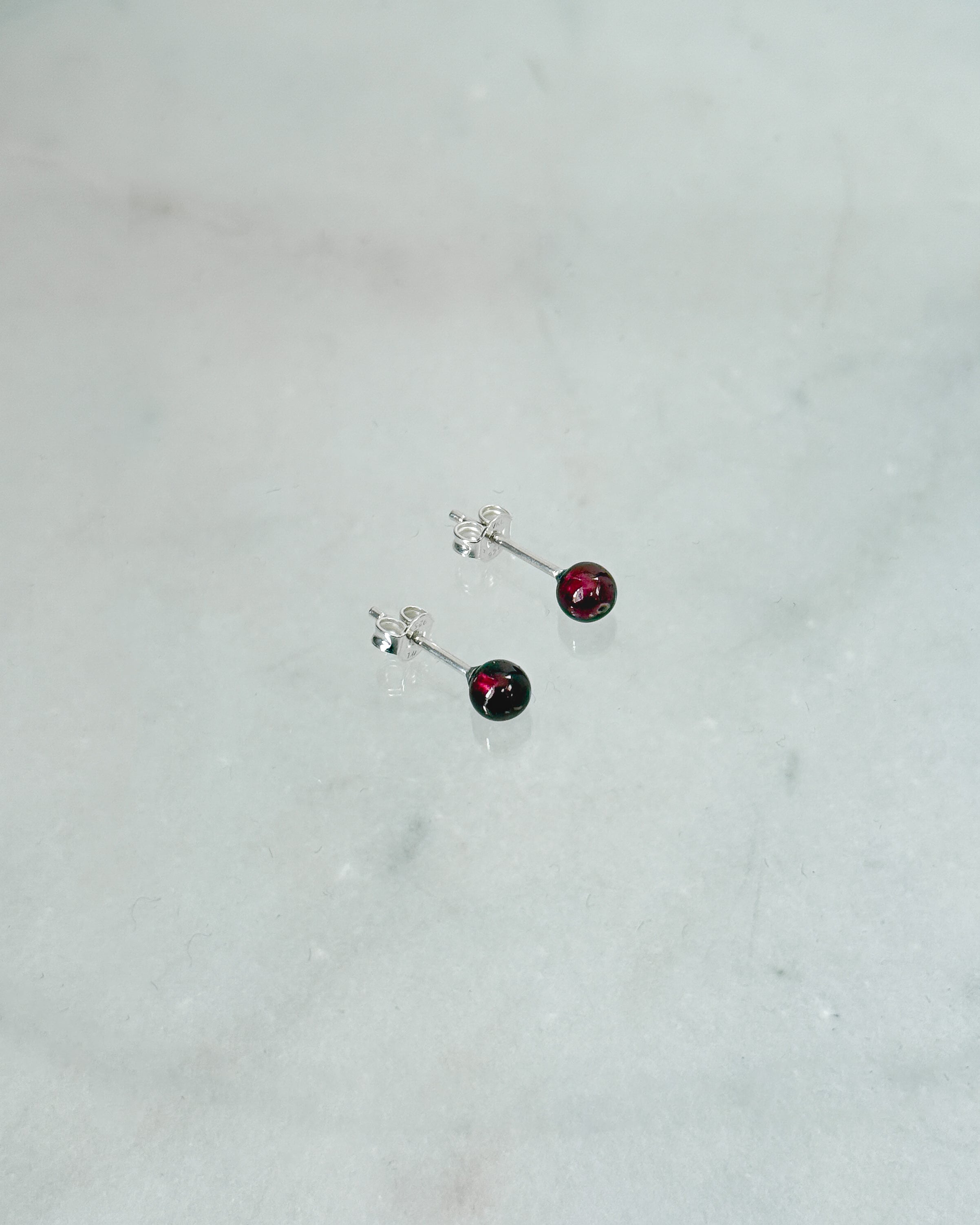 Zarte Granat-Ohrstecker mit 4 mm Natursteinperlen, die Leidenschaft, Stärke und vitale Energie ausstrahlen. Dank des dezenten Echtsilber-Stecksystems passen sie auch ideal zu Goldschmuck – ein feines, kraftvolles Detail für jeden Tag.