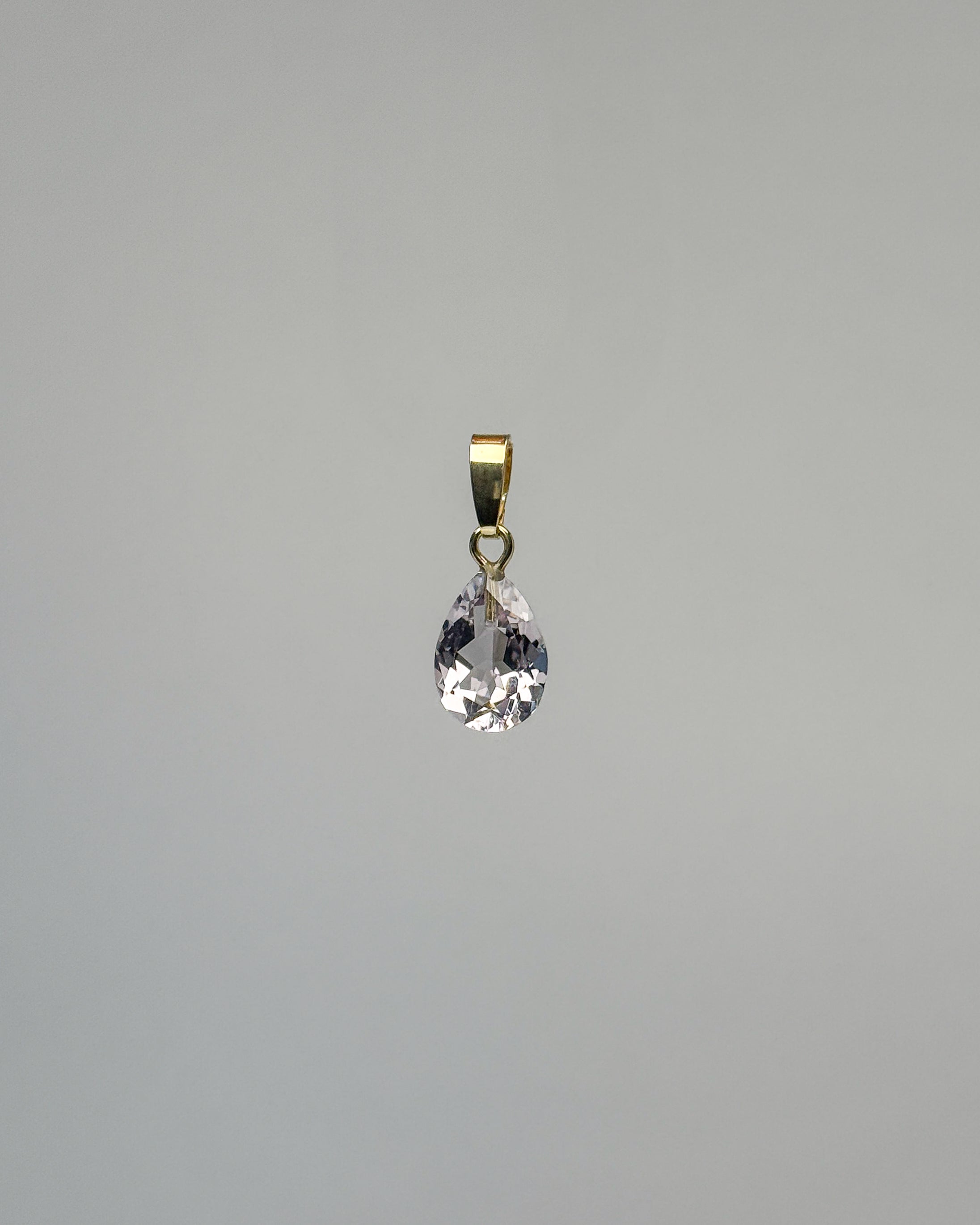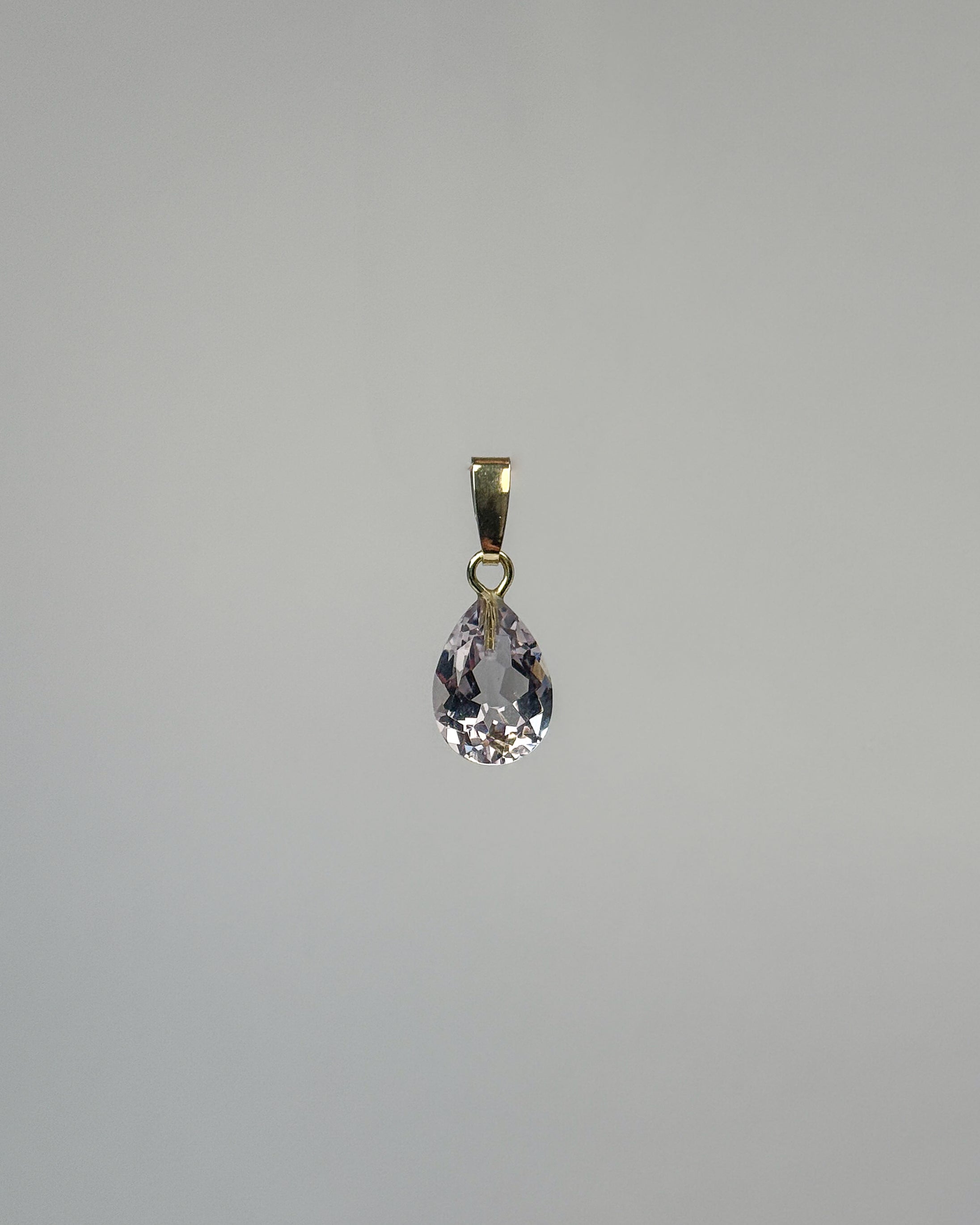 Der Morganit zeigt sich hier in einem klassischen, fein facettierten Tropfenschliff, der seine sanften Rosé- und Pfirsichnuancen besonders weich zur Geltung bringt. Die facettenreiche Oberfläche fängt das Licht ein und lässt den Edelstein bei jeder Bewegung zart schimmern – ein elegantes Zusammenspiel aus Reinheit, Weichheit und subtiler Brillanz. Der Tropfenschliff verleiht dem Stein einen fließenden, fast wasserartigen Charakter, der perfekt zur zarten Energie des Morganits passt. Die vergoldete Öse aus 925 Sterlingsilber setzt einen warmen, edlen Akzent und rundet das Design harmonisch ab.