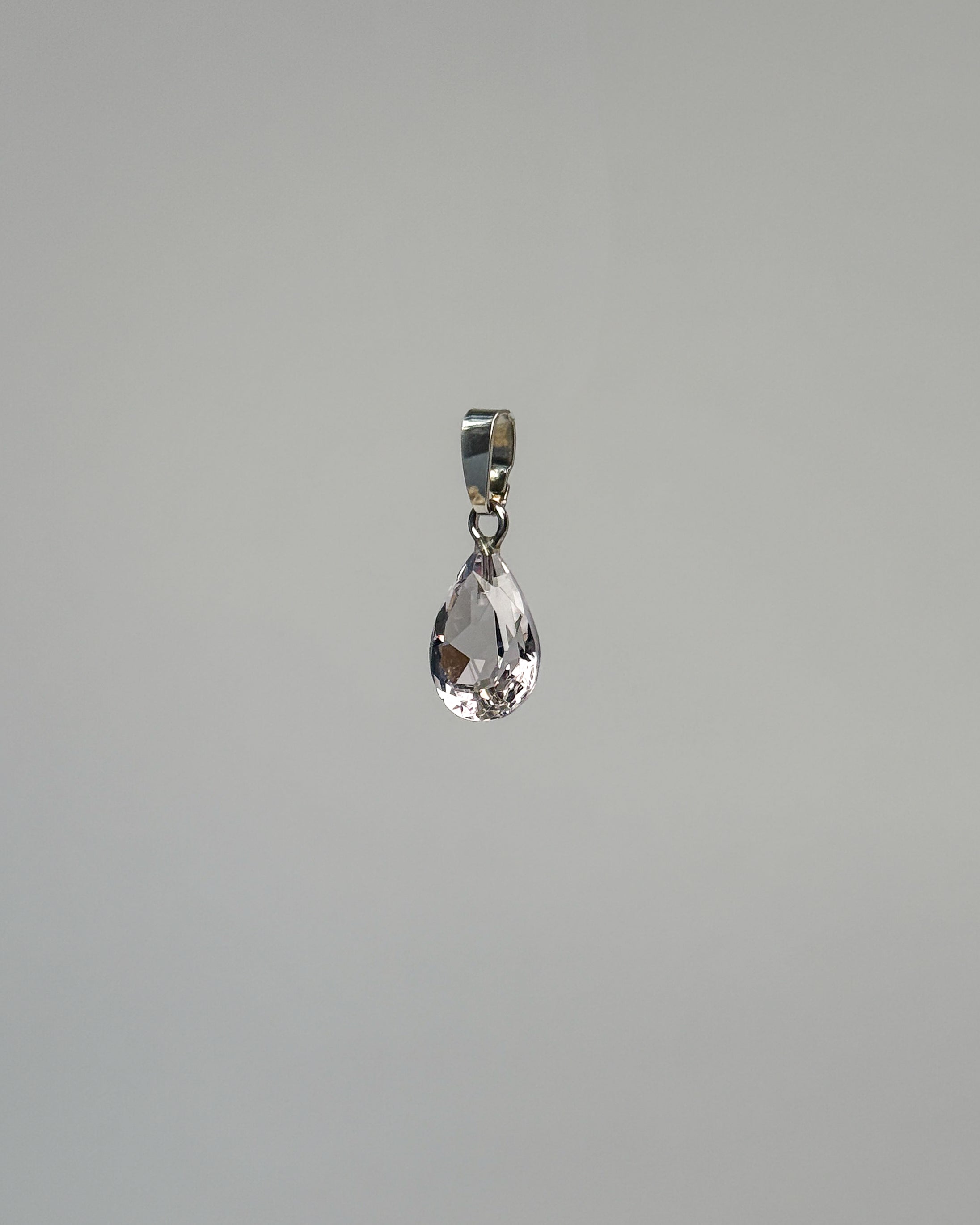 Dieser Morganit zeigt sich in einem klassischen, fein facettierten Tropfenschliff, der seine weichen Rosé- und Pfirsichnuancen besonders sanft hervorhebt. Die vielen Facetten lassen Licht wie kleine Funken im Inneren des Steins tanzen, während seine Tropfenform eine fließende, feminine Eleganz ausstrahlt. Der Anhänger wirkt zart, rein und gleichzeitig strahlend – ein Schmuckstück, das die märchenhafte Leichtigkeit unserer FairyTale Kollektion perfekt verkörpert. Die schlichte Silberöse rundet das Design modern und klar ab, sodass der Fokus vollständig auf dem Edelstein ruht.