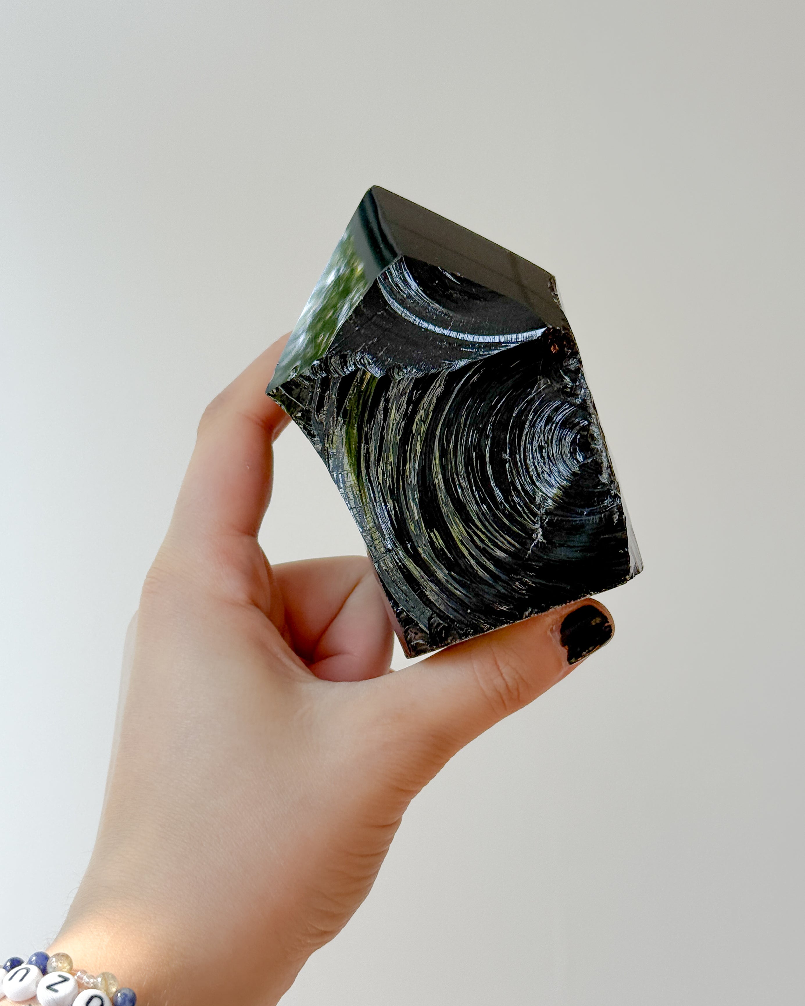 Ein Obsidian Turm ist ein polierter Edelstein in Form eines Turms oder Obelisken, gefertigt aus schwarzem Obsidian. Diese Form ermöglicht es, die Energie des Steins zu bündeln und in den Raum abzustrahlen.