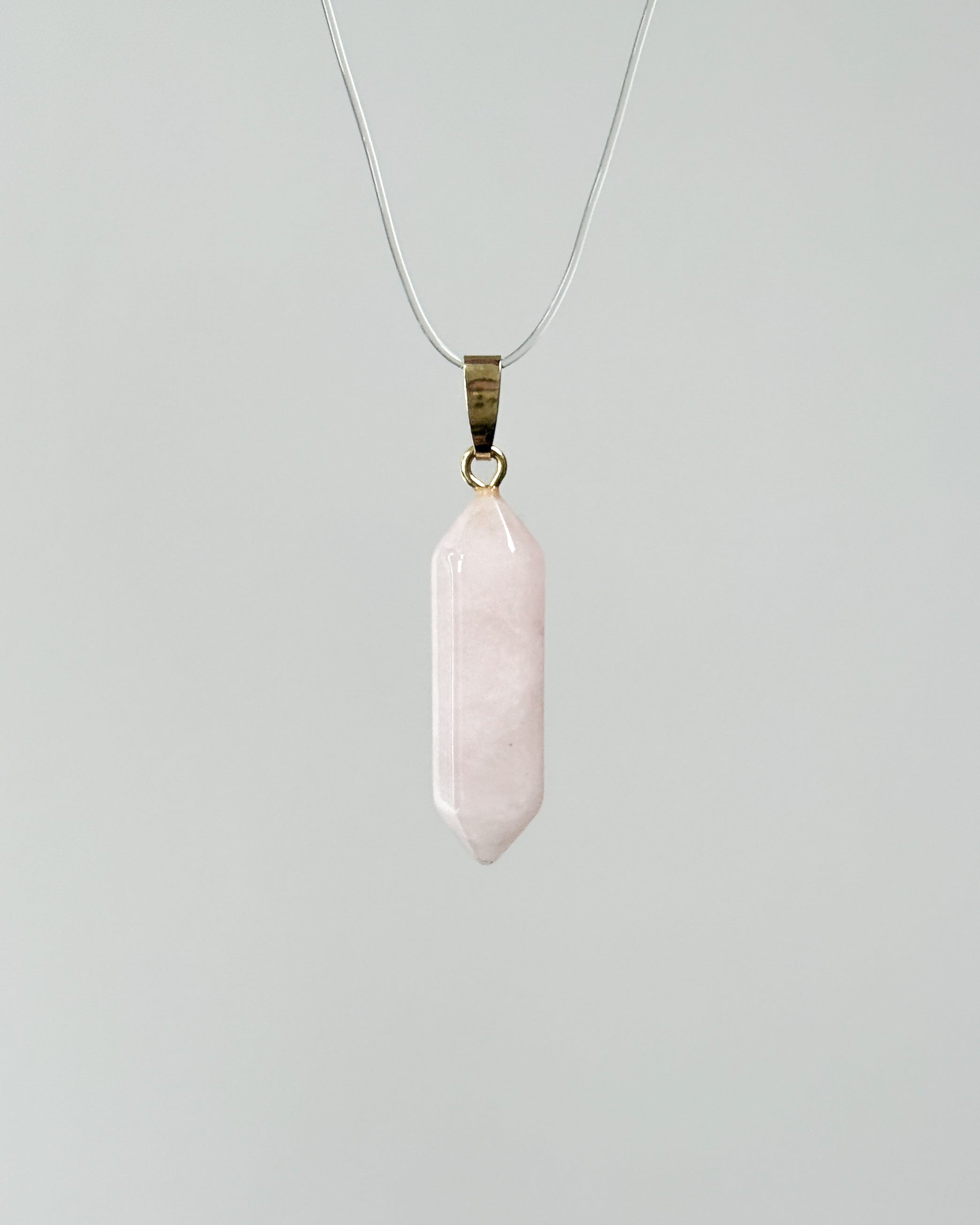 Ein hochwertiger Rosenquarz Doppelender Anhänger – Vergoldet ist ein zeitloser Begleiter, der sowohl als Schmuckstück als auch als spiritueller Talisman dient.