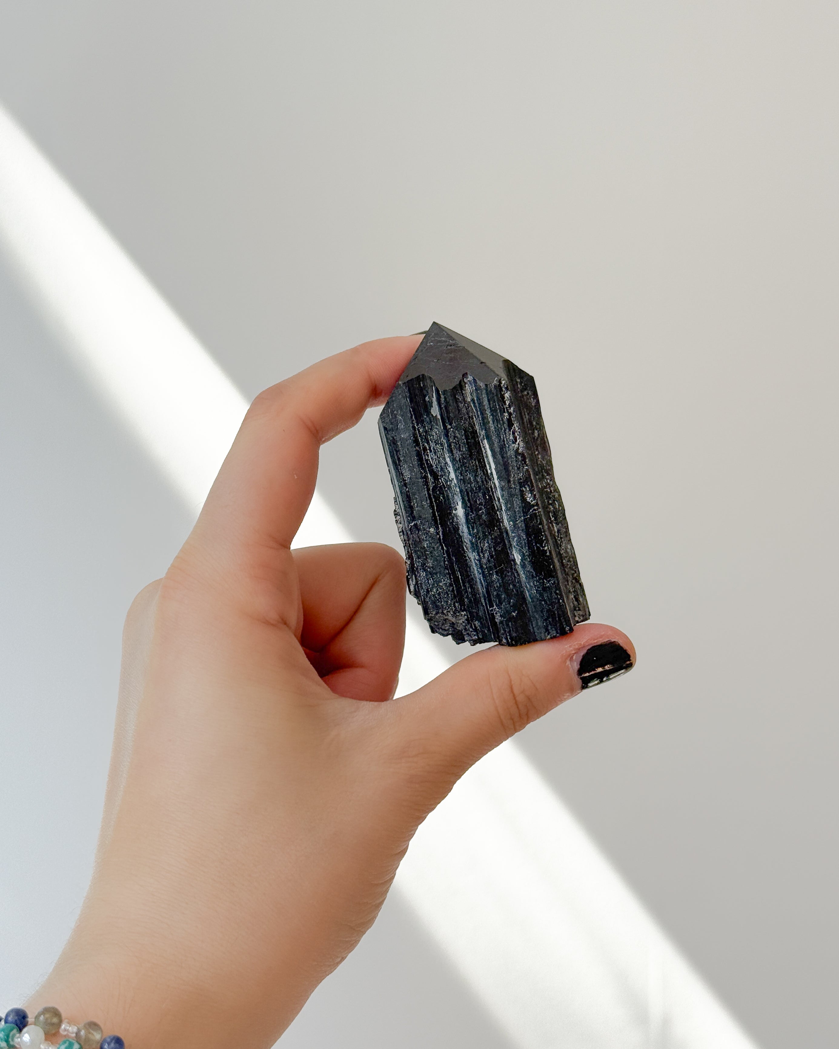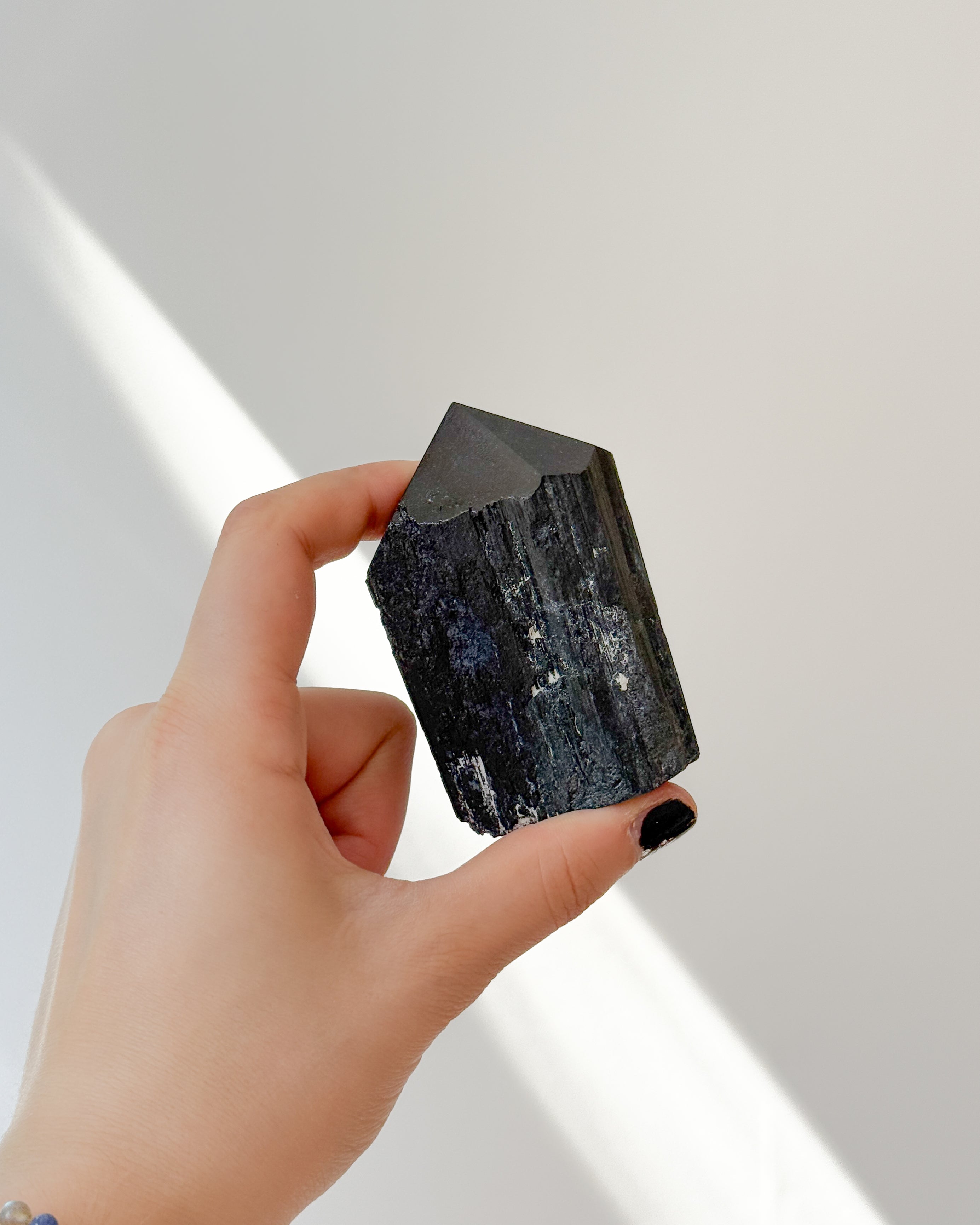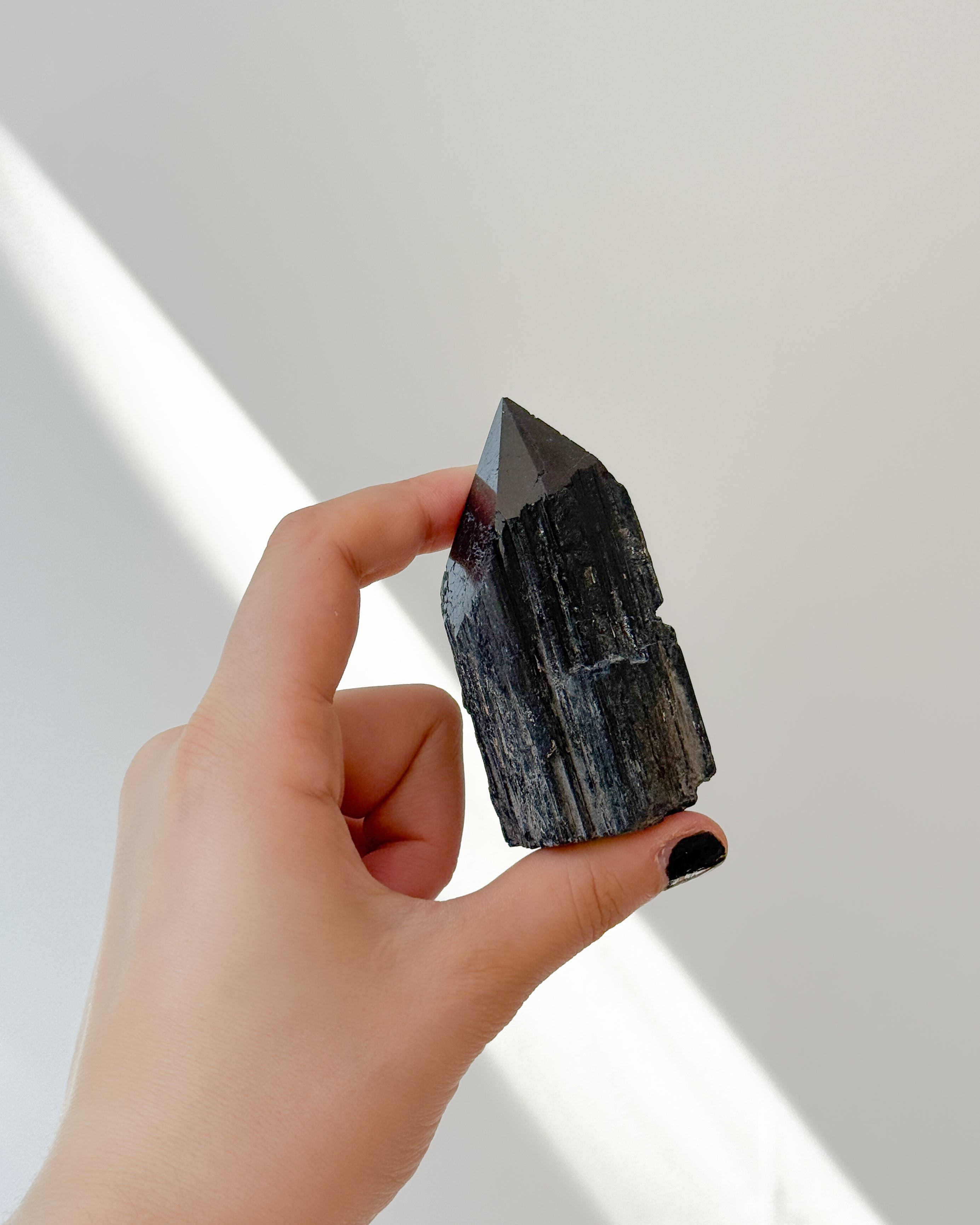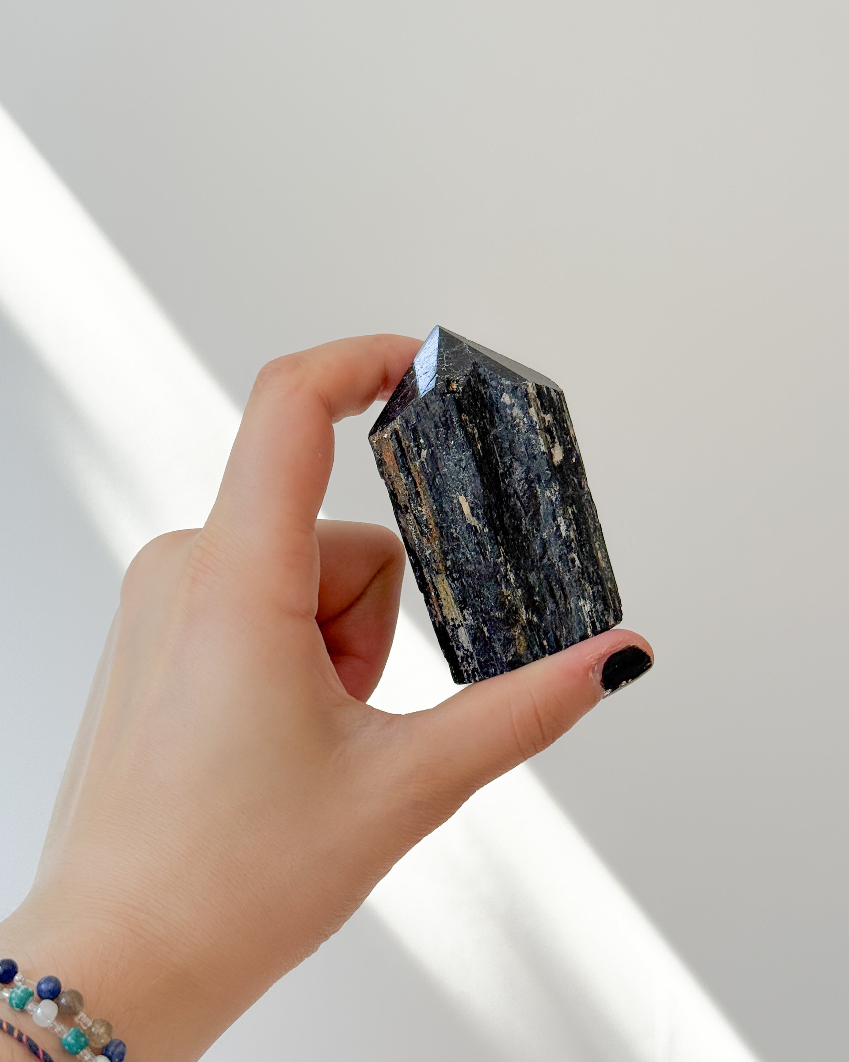 Mit seiner tiefdunklen Farbe erinnert er an Erdung, Klarheit und Rückverbindung zu sich selbst. Viele schätzen ihn als energetischen „Bodyguard“, der hilft, Grenzen zu wahren – gegenüber äußeren Einflüssen genauso wie gegenüber dem eigenen inneren Druck.