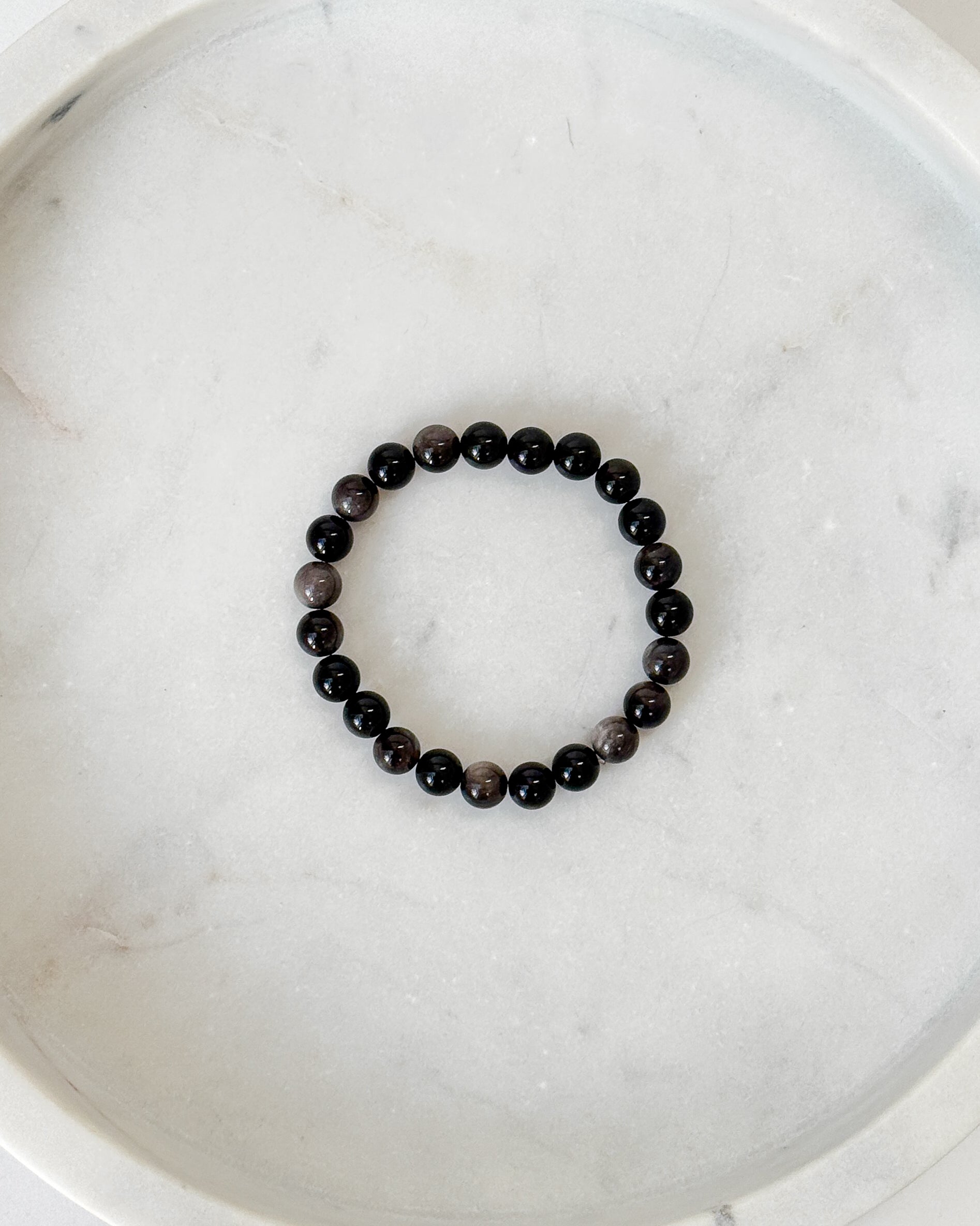 Weitere Informationen zum Silberobsidian Perlenarmband (8mm Perlen)